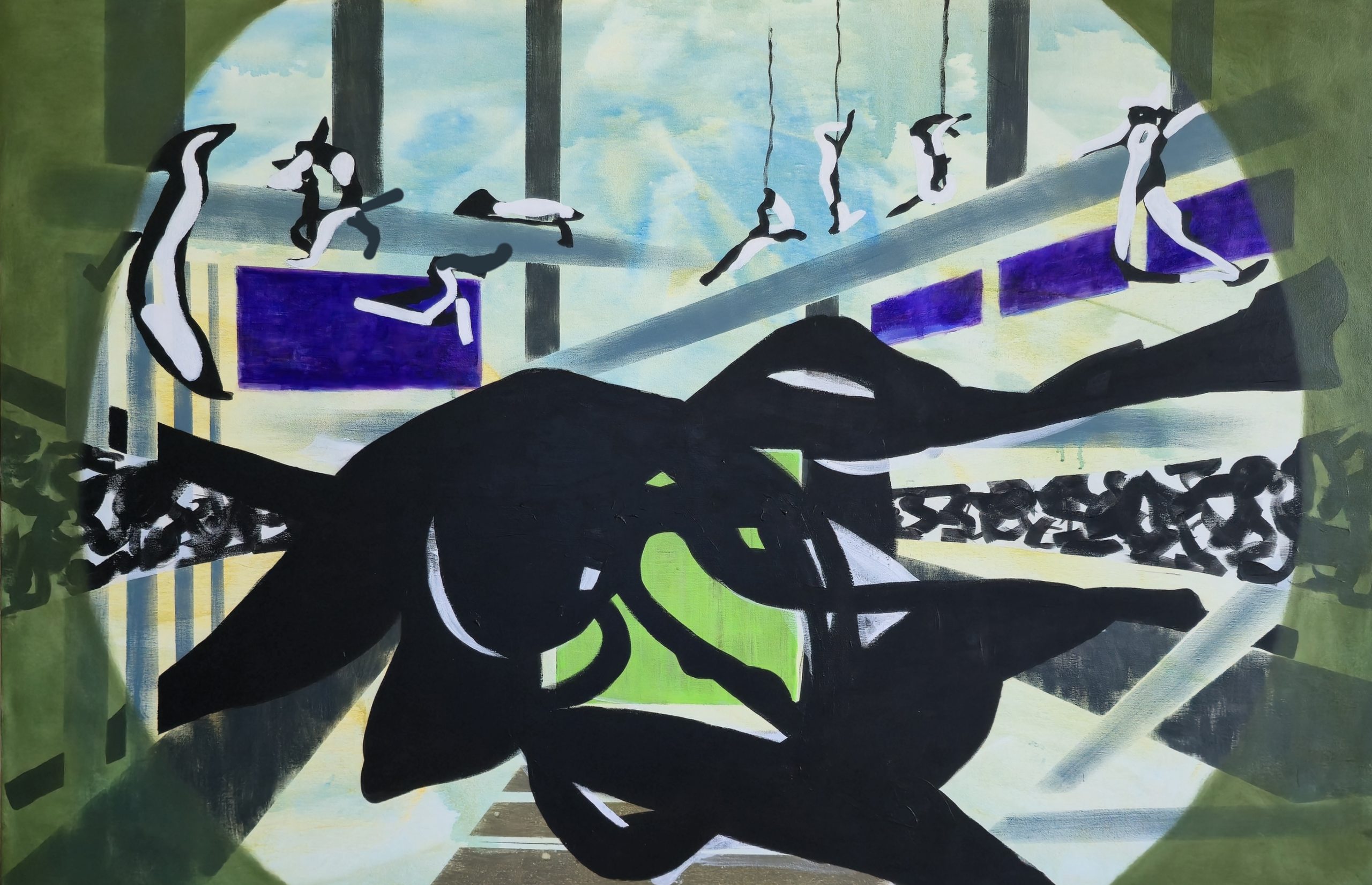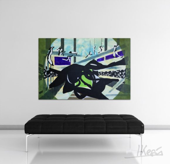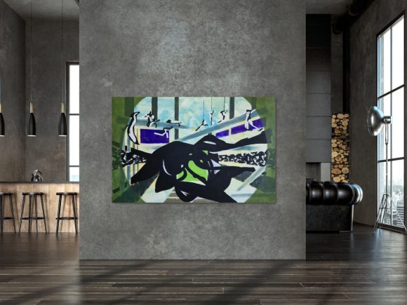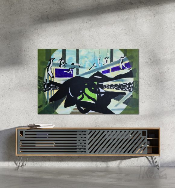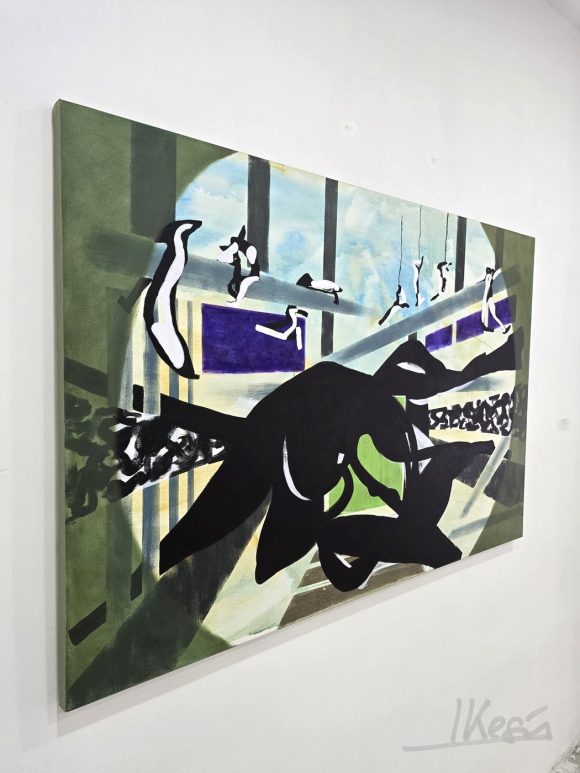 The layered construction allows forms to appear, partially dissolve, and re-emerge elsewhere, as if passing through different perceptual registers. This instability reflects the central concern of the Anima series: how meaning, orientation, and agency shift when the familiar logic of space is unsettled. Rather than describing a fixed moment, the painting holds a continuous state of crossing — a passage without a clearly defined point of arrival.