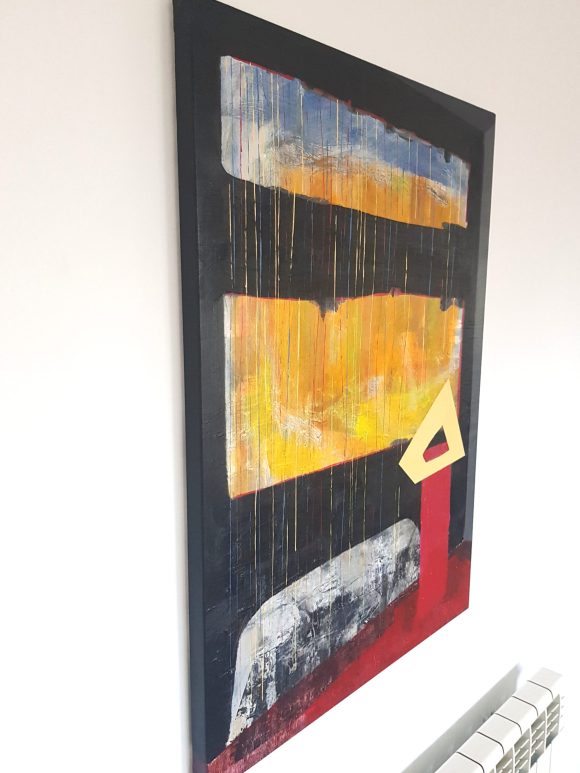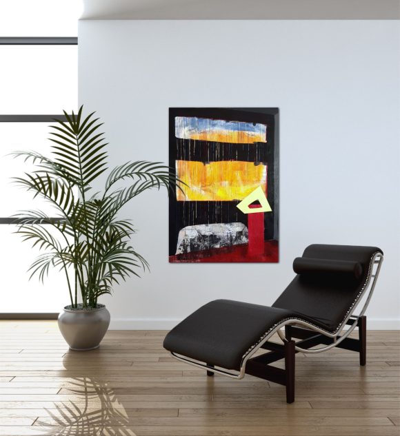 Harbour View draws on the aftermath of the Beirut port explosion, translating its impact into shifting planes, fractured structures, and glimpses of exposed interiors. The composition feels as though it is seen from within a ruined space — a viewpoint suspended between shelter and collapse.