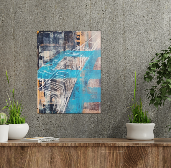 - Mounted on wooden stretcher frame