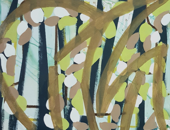 “Forest Secrets,” from the Mindscapes series, evokes the sensation of moving through a place that is both external and internal — a forest but also a state of mind. Organic forms and shifting green tones create a rhythm that hints at pathways or currents, while the composition’s lateral motion suggests a quiet passage through layered terrain.