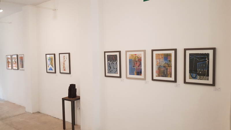 The exhibition was conceived as a tightly structured project based on shared constraints. All works were created using the same format (A3 Arches paper), the same limited palette of five colours, and the same materials and framing. By removing variables of colour, scale, and medium, the project focused attention on individual processes, mark-making, and compositional decision-making.