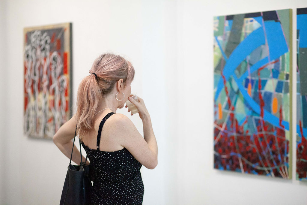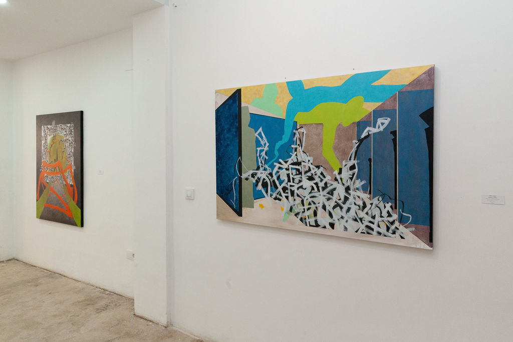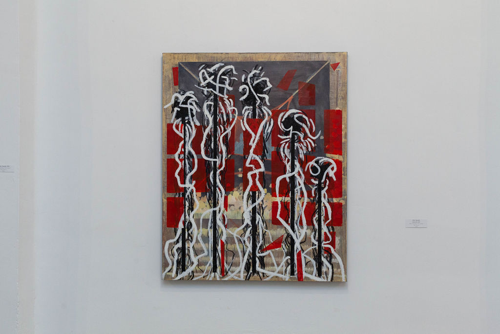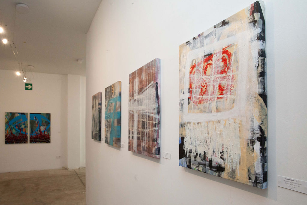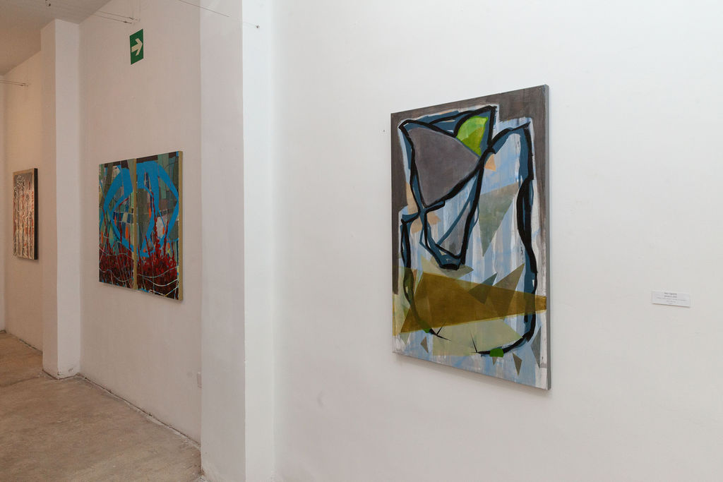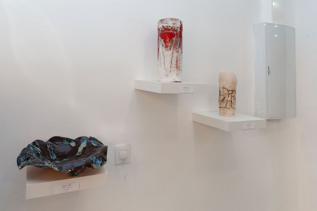 The works were installed across the main gallery spaces, with the larger Anima paintings forming the central axis of the show. Medium and small-format pieces from Future Relics and Echo were placed along the side walls and corridor area, while the Domestic portraits were exhibited in the blue area. The ceramics were displayed near the entrance and on a vertical structure between the Anima and Future Relics areas.