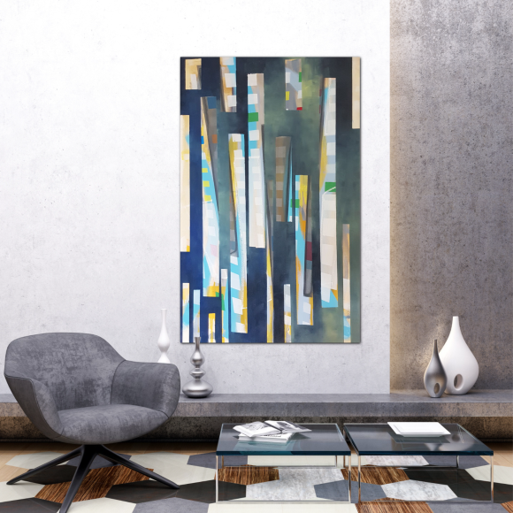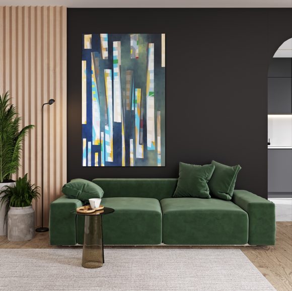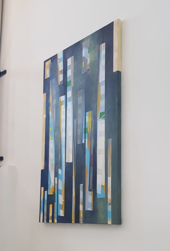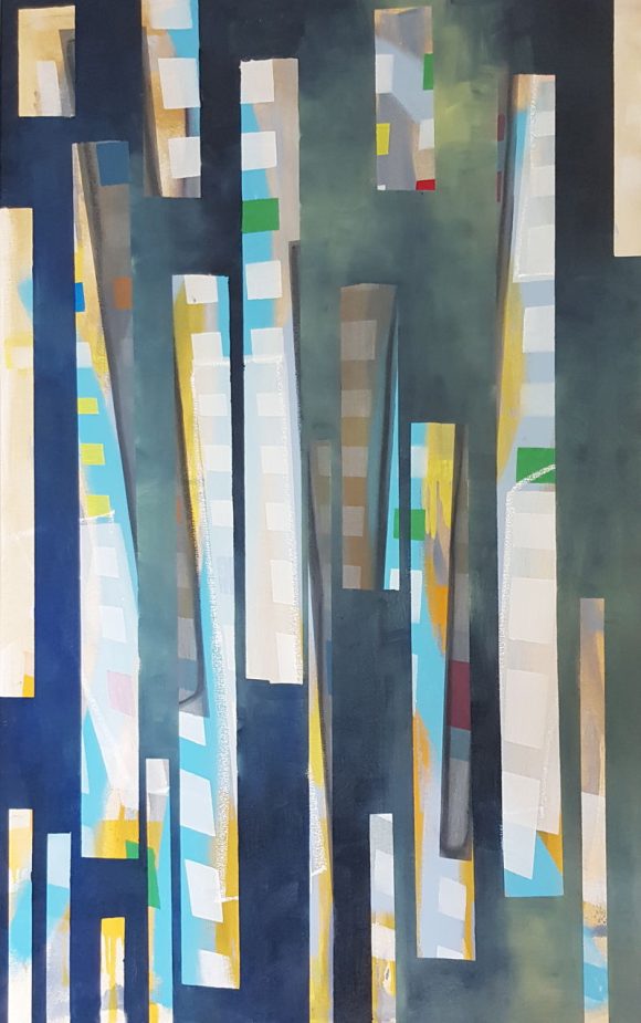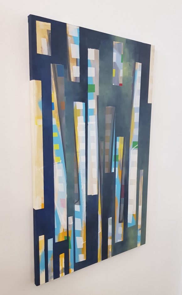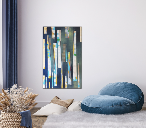 “Goa” draws on the vivid impressions of my time in the region — its brightness, layered histories, and the calm intensity that seems to sit beneath everyday life. The composition brings together saturated colour passages that carry a sense of warmth and openness, anchored by a more muted, structural overlay that introduces depth and slowing rhythm.