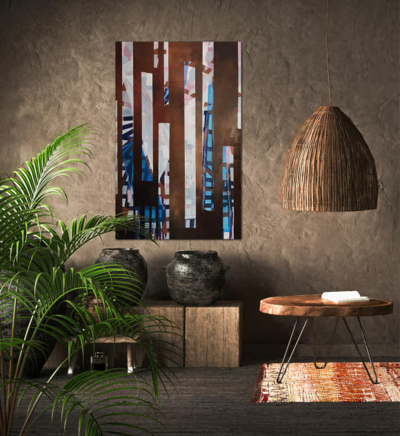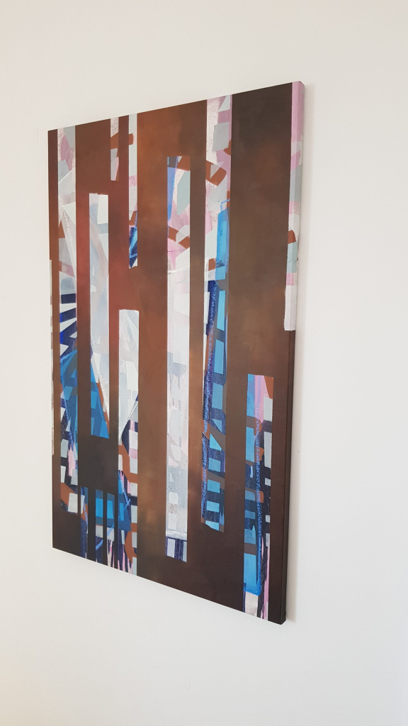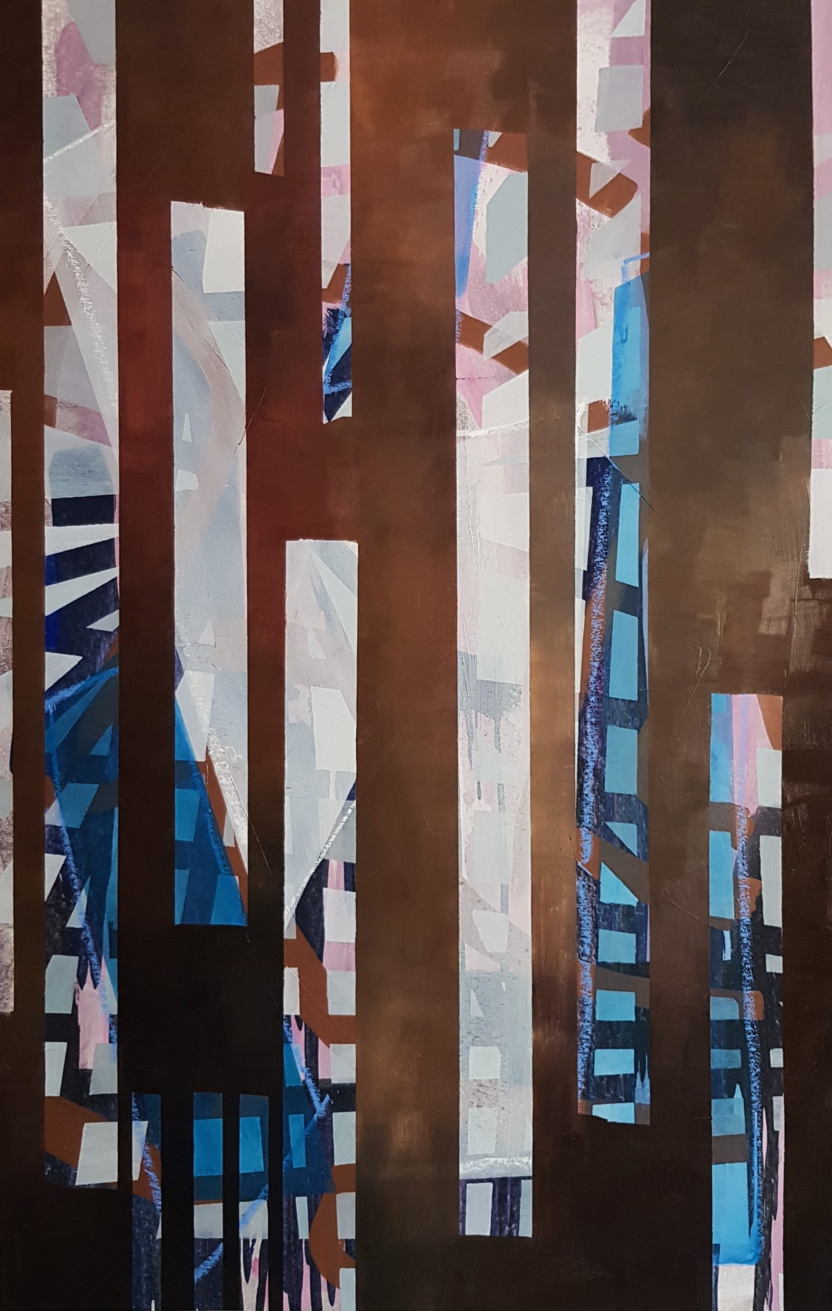 Hints of blue carry an echo of waterways, while brighter passages shift the mood toward something more open and expressive. Among them, the pink elements introduce a quieter, more personal note, touching on the complexities of identity and the desire to push against established boundaries.