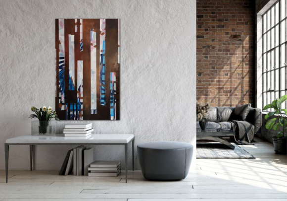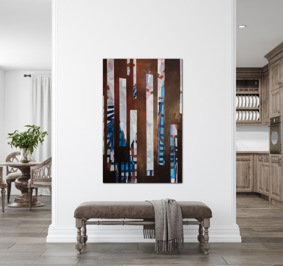 “Hamburg,” from the Stripes series, draws on memories of the city where I grew up. The vertical brown structure at the surface introduces a sense of order and weight, echoing the presence of historic brick architecture and the more restrained rhythms of everyday life. Beneath this, layers of colour and movement break through with a contrasting energy — irregular, fluid, and alive with the sense of a city in motion.
